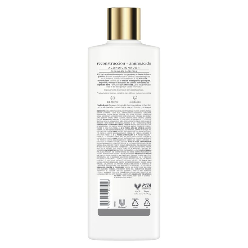- Nuevo Dove Hidratación + Hialurónico, con TECNOLOGÍA BIO-PROTEIN, con más de, que Repara, Regenera y Protege la cutícula del cabello reduciendo los signos de daño. Formulado con ácido hialurónico y vitamina, Dove repone la hidratacion para un cabello 100% mas suave y con movimiento .* Especialmente desarrollado para cabello seco. Prueba nuestro régimen completo para obtener mejores beneficios *Con el uso de shampoo y acondicionador de la línea comparado con shampoo sin agentes acondicionantes.