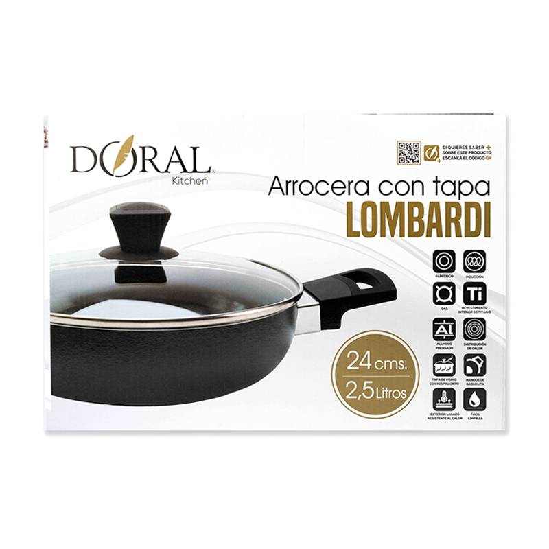 Arrocera Lombardi C/Tapa Vidrio 24cm / Negro – Doral
