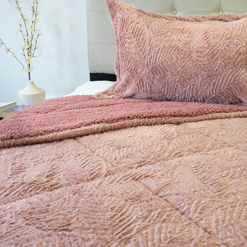 Cubrecama Plush Deluxe Sherpa 1.5 Plazas / Rosa Viejo – Doral