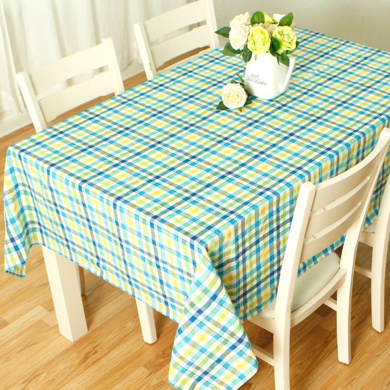 Mantel Polycotton Rectangular / Cuadrillé Verde Azul Amarillo - Doral