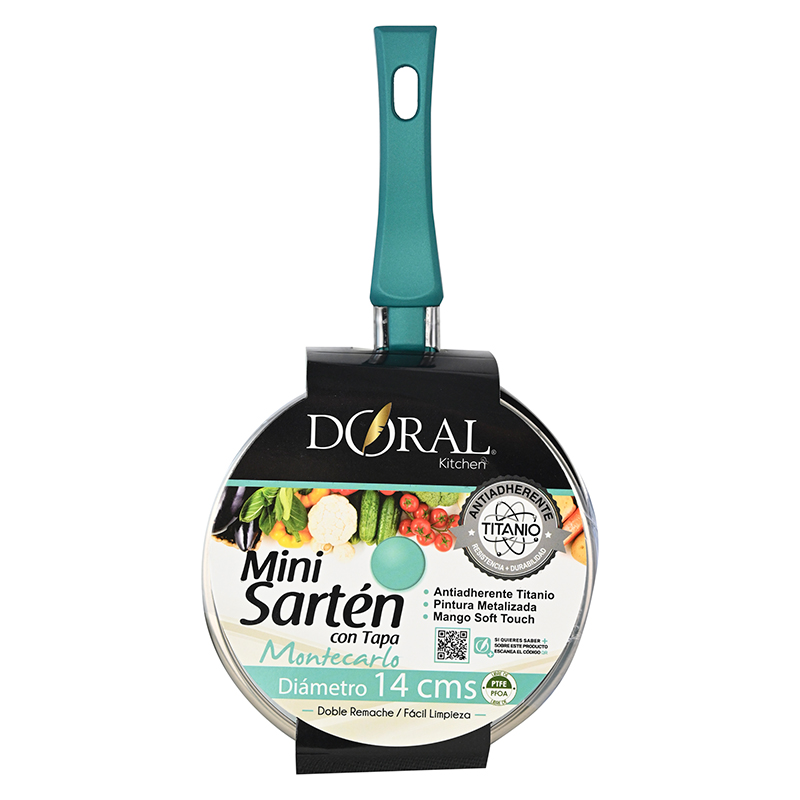 Mini Sartén Aluminio C/Tapa 14 cm. / Turquesa – Doral