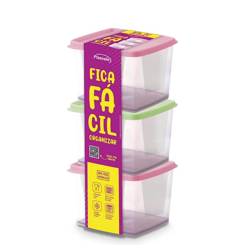 Pack Set 3 Contenedores Cuadrados 800 ml / Biovita - Plasvale