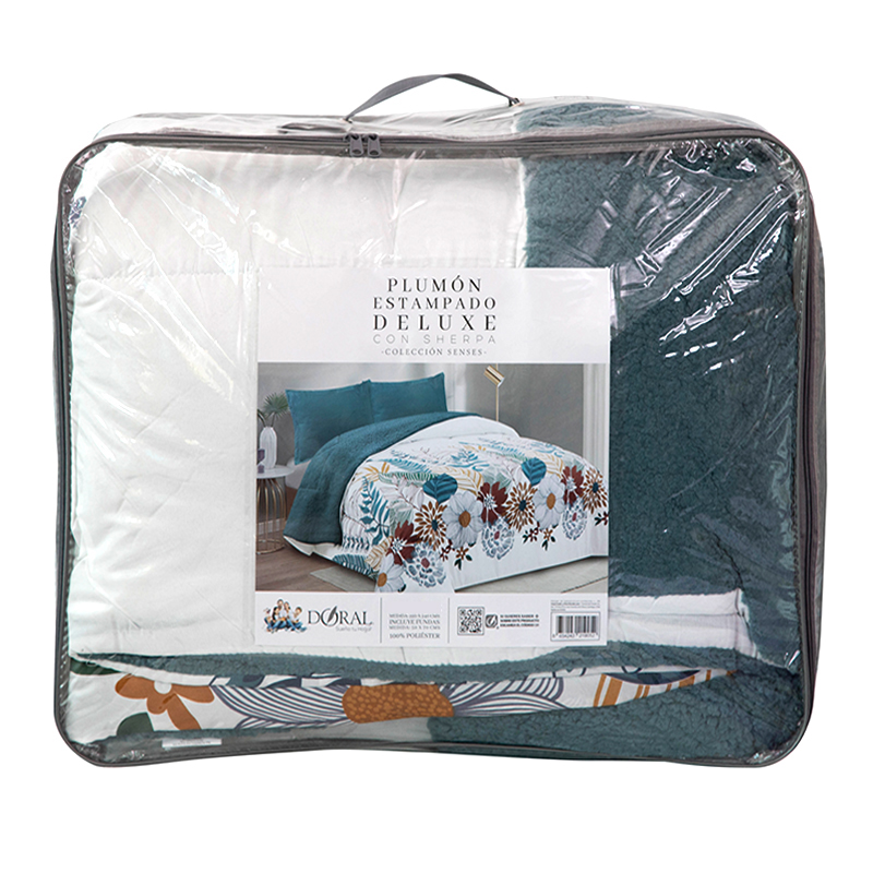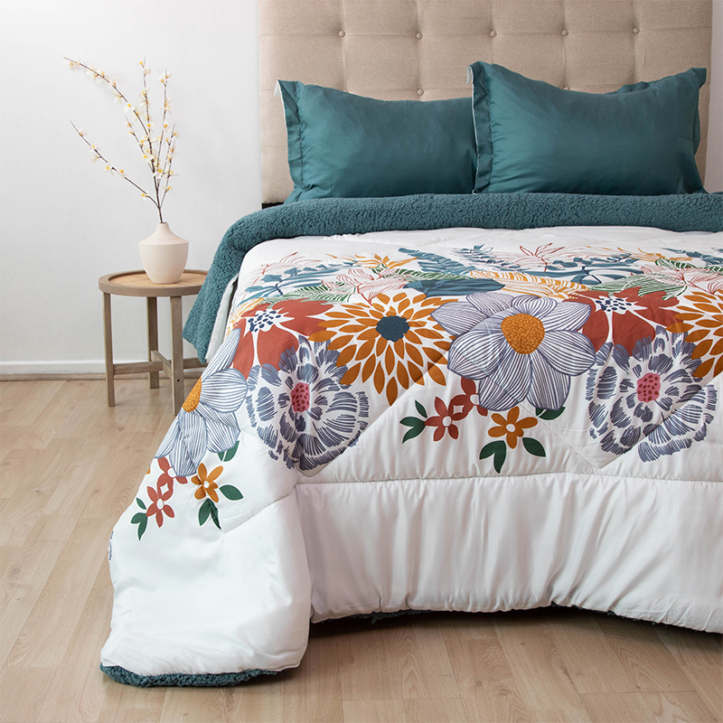 Plumón Estampado Deluxe Sherpa 3 Plazas / Flores Blanco Azul – Doral