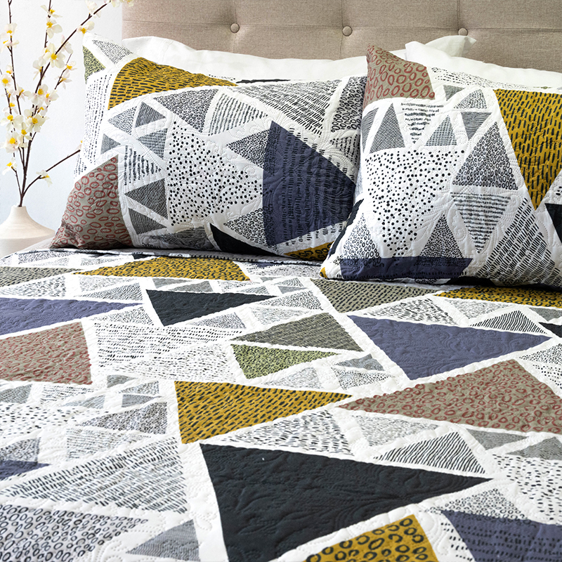 Quilt Hotpress Estampado 2.5 Plazas / Triángulos Gris Negro – Doral