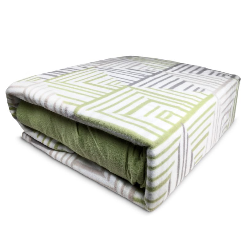 Sábanas de Polar Composé 2 Plazas / Cuadros Verde Claro Beige Gris - Doral