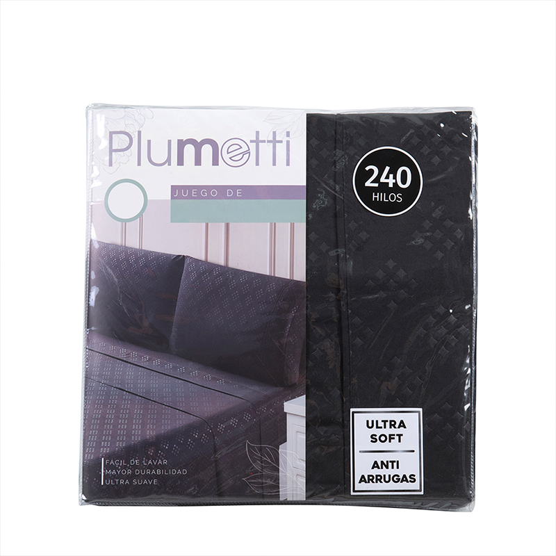 Sábanas Microfibra Embossed 1.5 Plazas / Negro – Plumetti