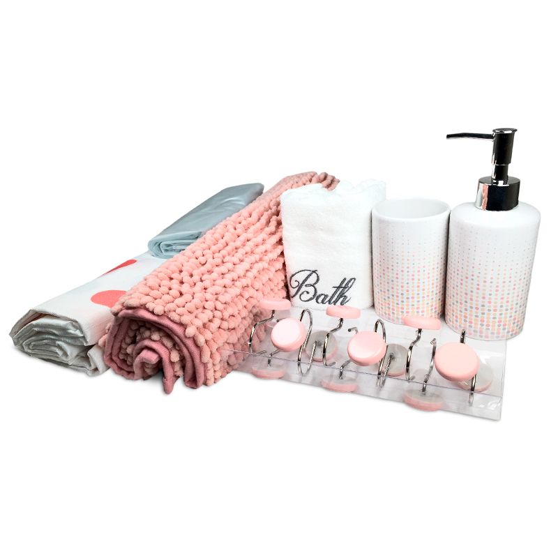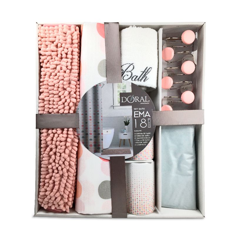 Set de Baño Ema 18 Piezas / Rosado Puntos Coral Gris - Doral